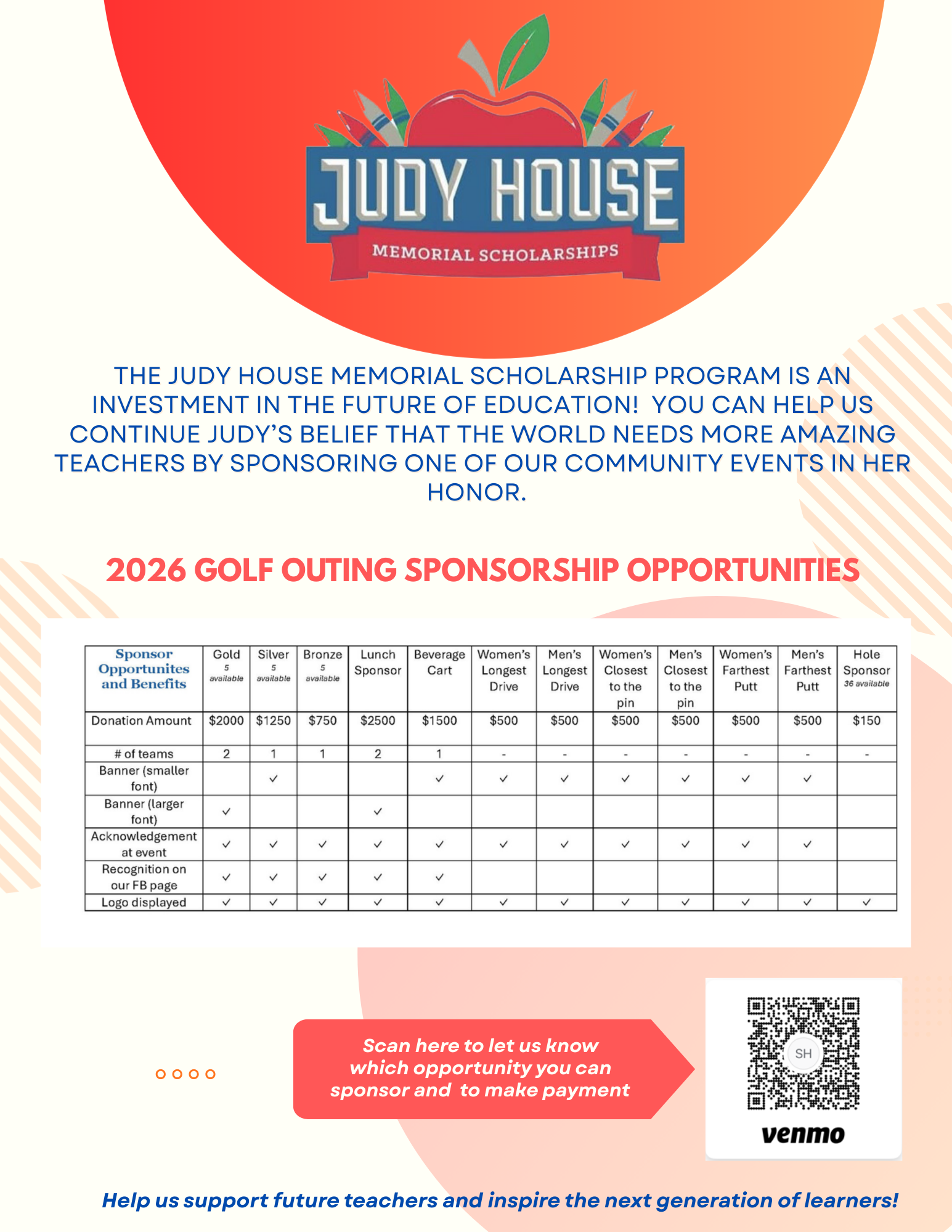 Your support directly funds the Judy House Memorial Scholarships, helping deserving students from Bath High School and Lansing Public Schools achieve their dreams of becoming amazing teachers. Together, we are investing in the next generation of dedicated educators.